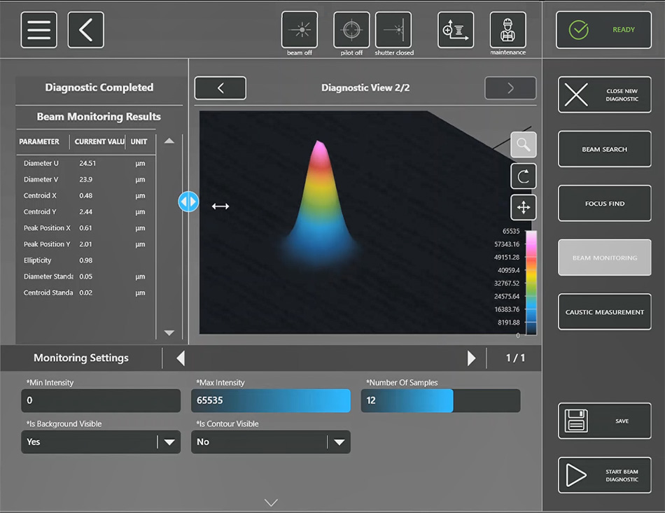 BeamInspect beam monitoring utilizes laser beam profile and  focused spot position to measure with high resolution and accuracy between production cycles.